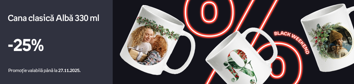 Cana personalizata clasică disponibilă în mai multe variante de culoare, este o alegere universală pentru cei care apreciază simplitatea și eleganța. Cana pentru cafea cu lapte sau cana de cafea cu forme aerodinamice va fi perfectă pentru iubitorii de cafea. Gama noastră include, de asemenea, căni cu poze si text magice care își dezvăluie amprenta atunci când sunt expuse la apă fierbinte și căni foarte practice cu lingură.