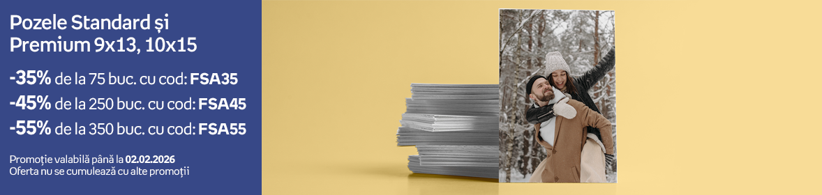 Acum poți imprima pozele pe hârtie de cea mai bună calitate, luminoasă sau opacă, rezistentă în timp. Poți să printezi fotografiile alese pe diferite dimensiuni și forme preferate de tine.