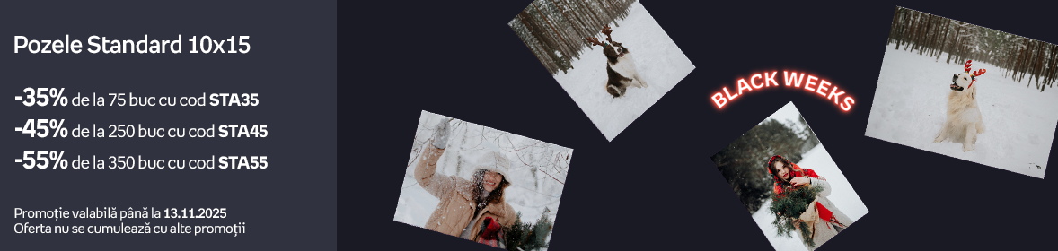 Acum poți imprima pozele pe hârtie de cea mai bună calitate, luminoasă sau opacă, rezistentă în timp. Poți să printezi fotografiile alese pe diferite dimensiuni și forme preferate de tine.