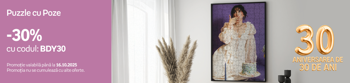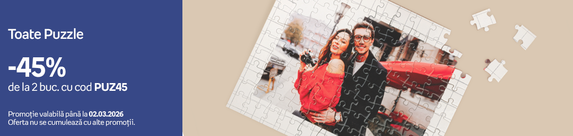 Este mult mai mult decât un simplu puzzle comercial cumpărat din magazin, este un puzzle unic pentru ca puzzle-ul tău va conține o fotografie făcută chiar de tine, portretul unei persoane dragi, sau o imagine care își place în mod deosebit. Comandă acum un puzzle online, și vei vedea bucuria din ochii copiilor când vor realiza un puzzle cu super eroul lor preferat, cu animalul lor de companie, sau vor descoperi cadrul acelui picnic grozav de săptămâna trecută în parc. Poți să le faci o surpriză și în același timp să îi pui la încercare chiar și pe bunici, făcându-le cadou un puzzle din fotografie ,optând pentru un puzzle din 500 de piese, sau chiar un puzzle din 1000 de piese, punându-i să descopere care dintre nepoței se ascunde în puzzle-ul personalizat. Fotografiile tale cele mai frumoase îți reconstruiesc amintirile și emoțiile bucată cu bucată, asemănător unui puzzle; de aceea te invităm să realizezi chiar acum un puzzle din fotografie personalizat și vei da un aspect și mai distractiv acestor amintiri. Un puzzle fotografic personalizat este un mijloc eficient și în același timp neconvențional, de neuitat pentru a transmite un mesaj cuiva drag. Poate fi un cadou perfect de oferit indiferent de situație: de Crăciun, pentru aniversarea voastră, pentru ziua de naștere, sau onomastică persoanei dragi. Poți să surprinzi plăcut pe oricine și să îi retrezești zilnic amintirile voastre dragi cu un puzzle magnetic. Datorită faptului că puzzle-ul magnetic reprezintă o suprafață magnetică, îl puteți lipi pur și simplu pe frigider, sau oriunde aveți o suprafață de metal. Puzzle-ul magnetic personalizat cu o fotografie poate fi o idee minunată de invitație la un eveniment sau la o petrecere aniversară, un mijloc inventiv pentru anunțarea căsătoriei, sau puteți să îl folosiți ca pe o prezentare modernă în afacerile voastre.